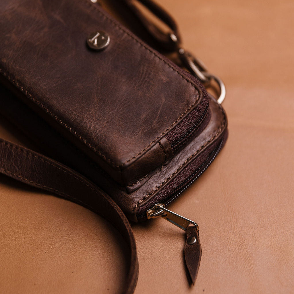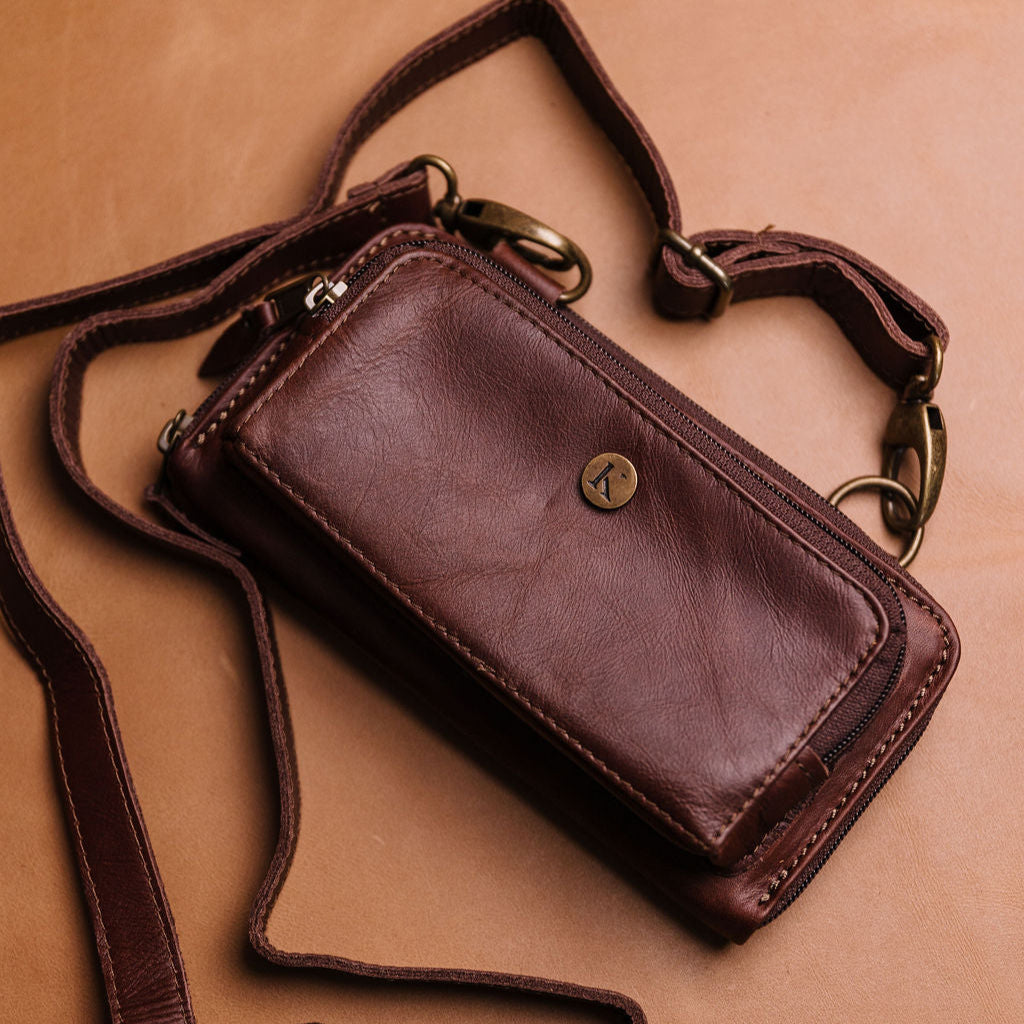 Busy days call for smarter carry. This hands-free leather sling wallet keeps your phone, cards, coins, and cash neat and accessible. Designed for the woman on the go, it features a spacious cellphone pouch, secure zip compartments, and 12 card slots — all wrapped in handcrafted leather with a luxe adjustable strap.